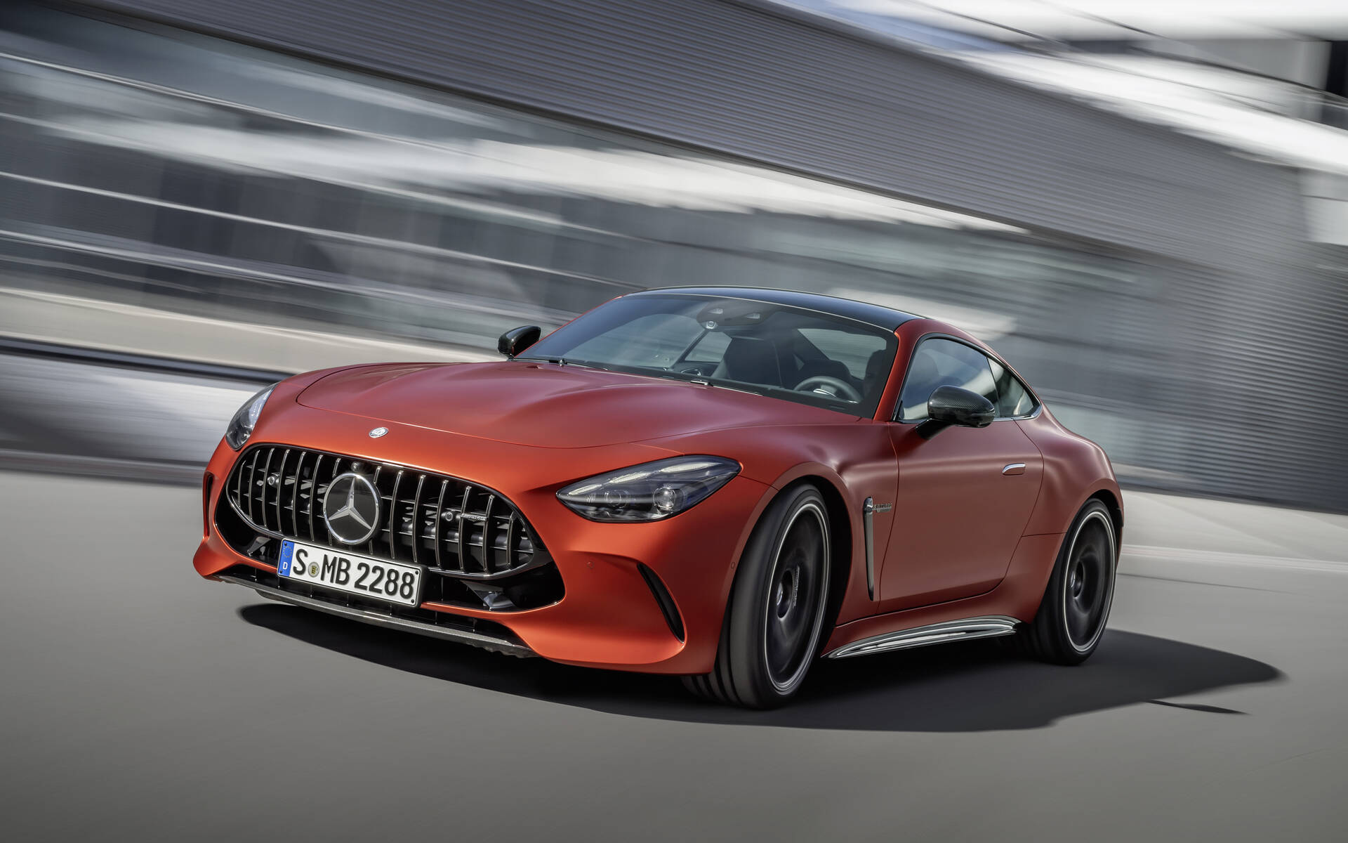 Features AMG-specific design elements like Panamericana grille and sporty bumpers.